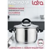 Кастрюля LARA 02-9003 6,5л., со сливом, подходит для ИНДУКЦИИ