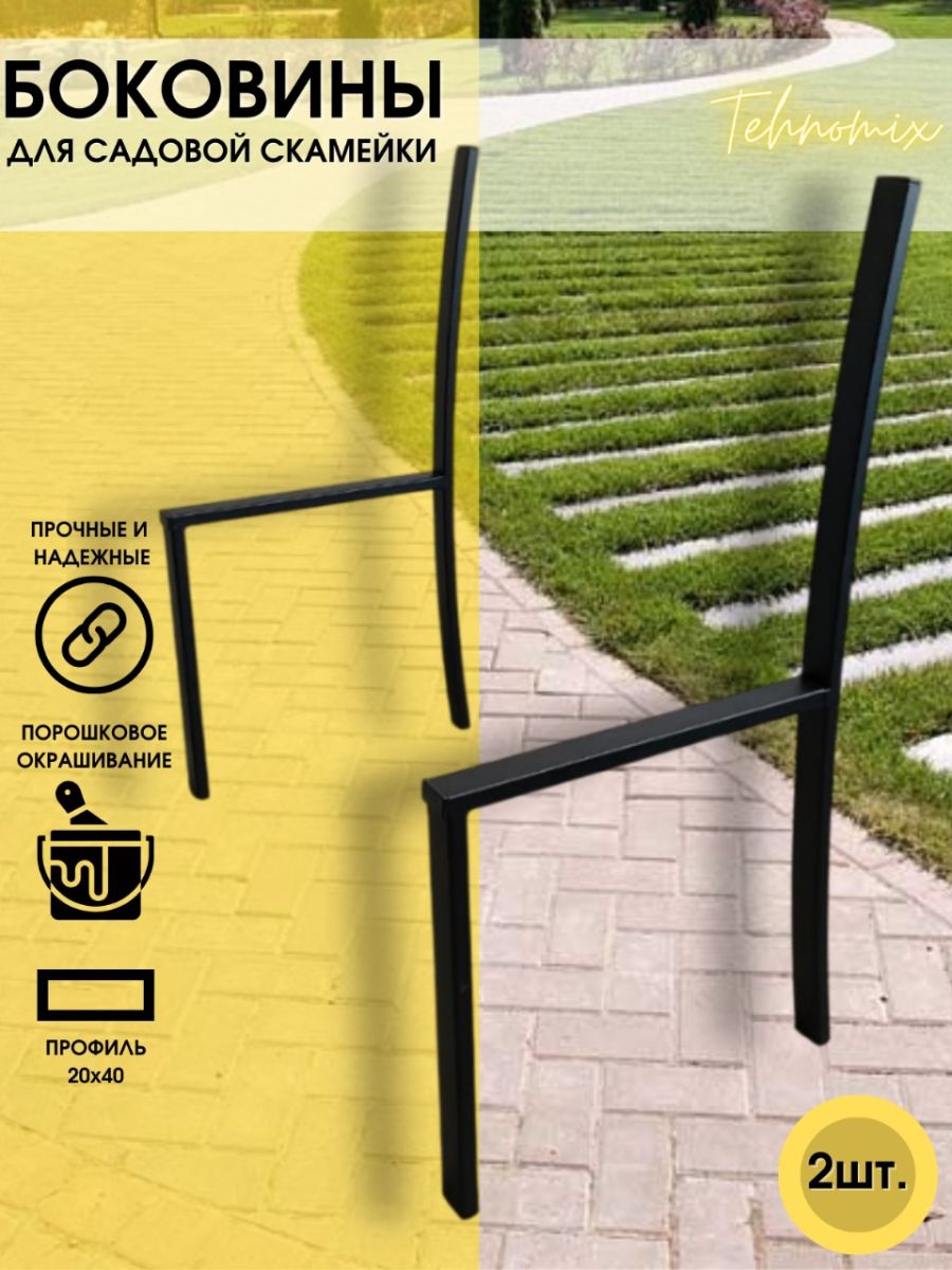 Боковины для скамейки для дачи и огорода со спинкой в стиле "Лофт". Прочный сварной металлический каркас из профильной трубы 40*20 мм. Покрыт полимерно-порошковой краской. Ножки и отверстия в каркасе закрыты пластиковыми заглушками.