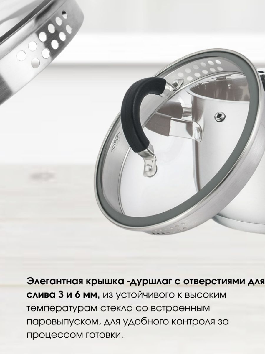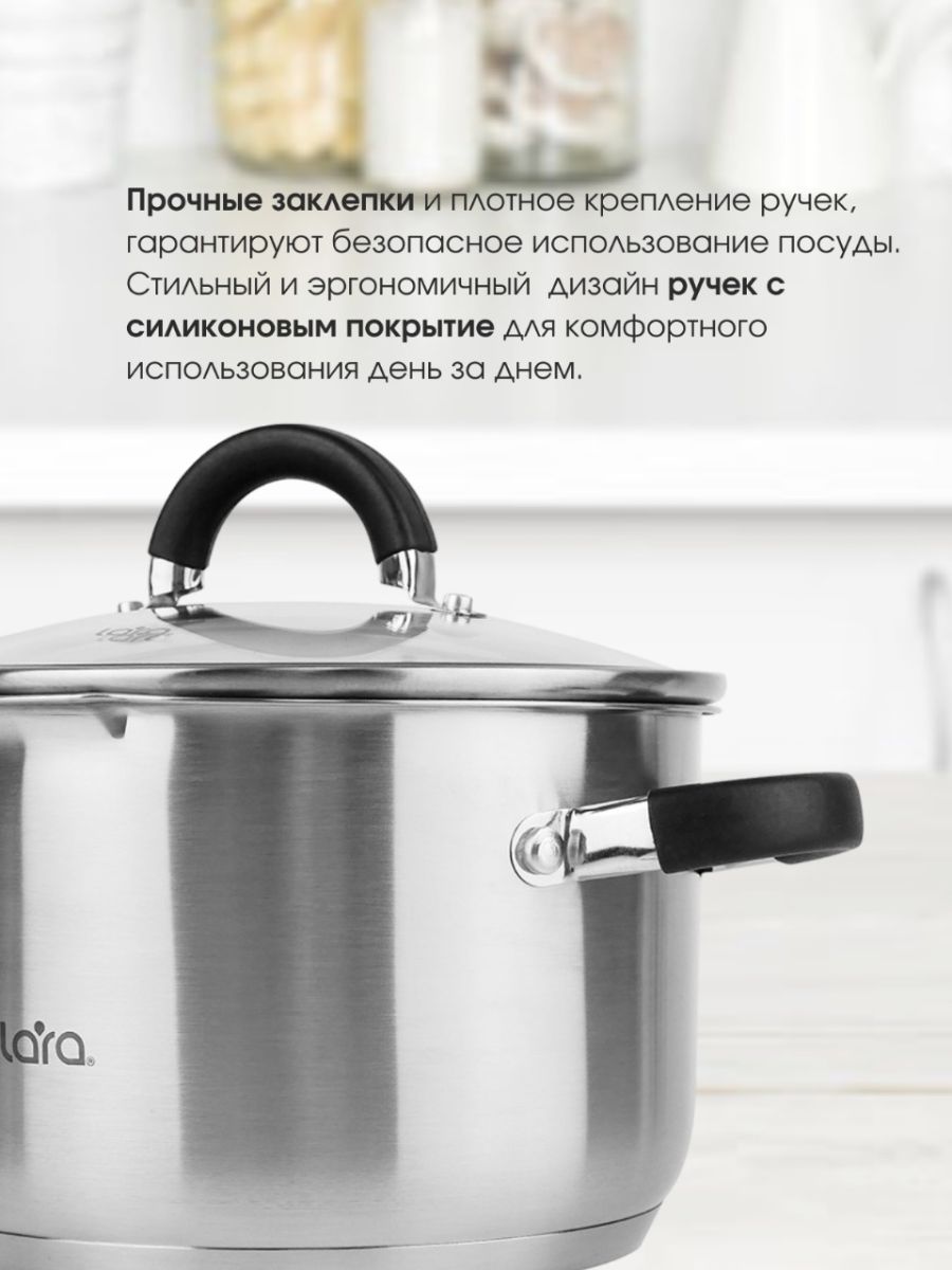 Кастрюля LARA АФИНА 02-267 2,9л, капсулированное индукционное дно, стеклянная крышка