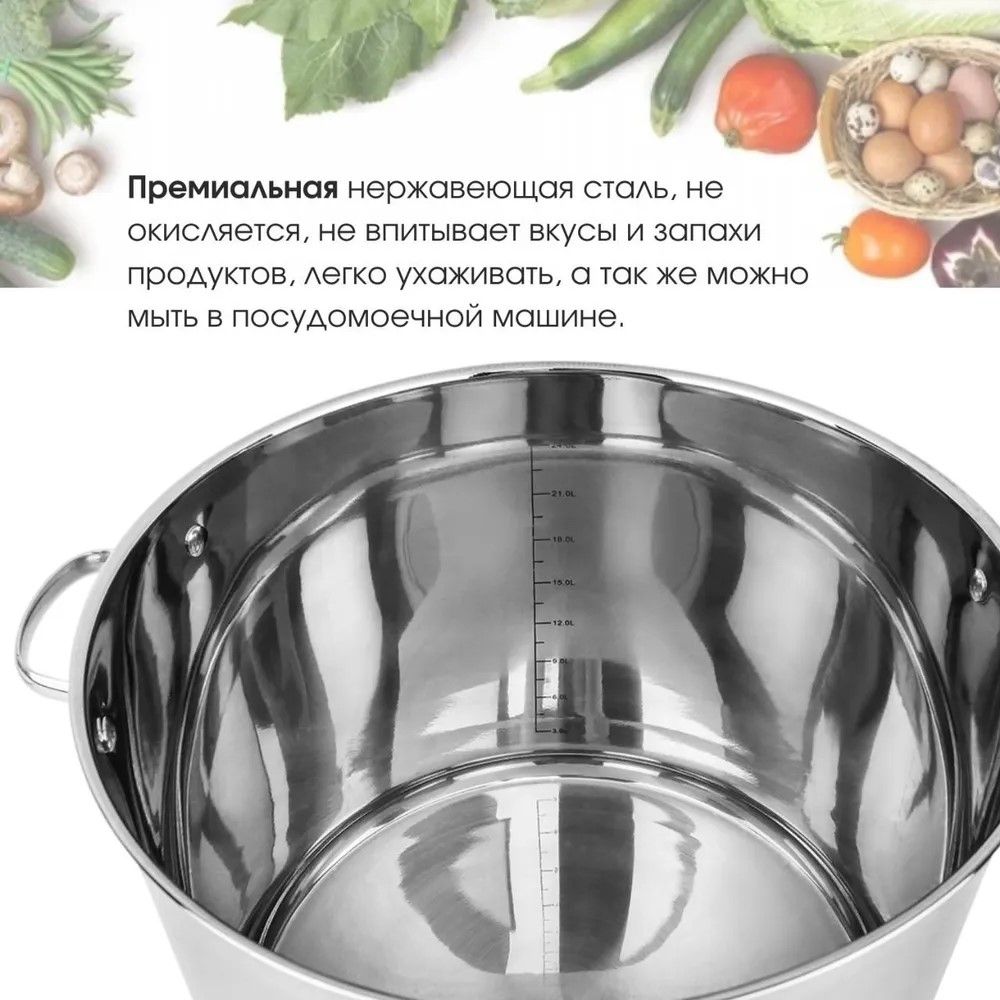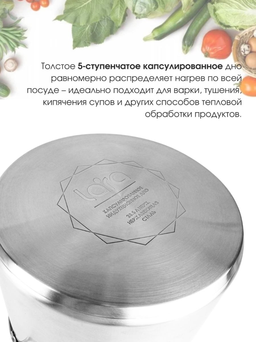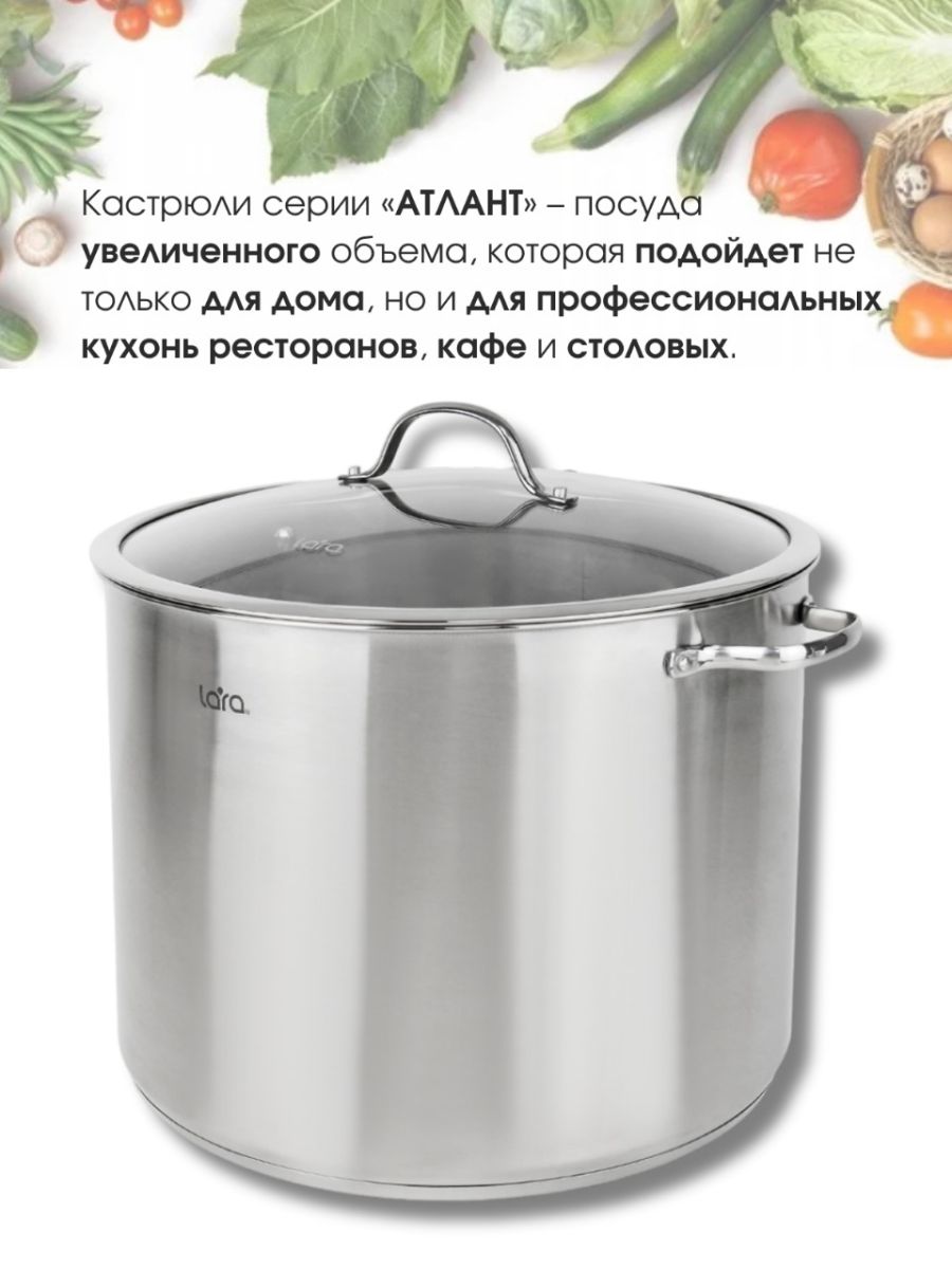 Кастрюля LARA АТЛАНТ 02-903 24,5л.,индукция, стеклянная крышка