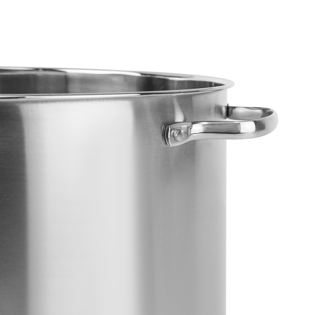 Кастрюли серии «АТЛАНТ» – посуда увеличенного объема, которая подойдет не только для дома, но и для профессиональных кухонь ресторанов, кафе и столовых. Премиальная нержавеющая сталь, не окисляется, не впитывает вкусы и запахи продуктов, легко ухаживать а так же можно мыть в посудомоечной машине. Прочные заклепки и плотное крепление ручек, гарантируют безопасное использование посуды. Крышка выполнена из устойчивого к высоким температурам стекла и металла, оснащена встроенным паровыпуском. Толстое 5-ступенчатое капсулированное дно равномерно распределяет нагрев по всей посуде – идеально подходит для варки, тушения, кипячения супов и других способов тепловой обработки продуктов.