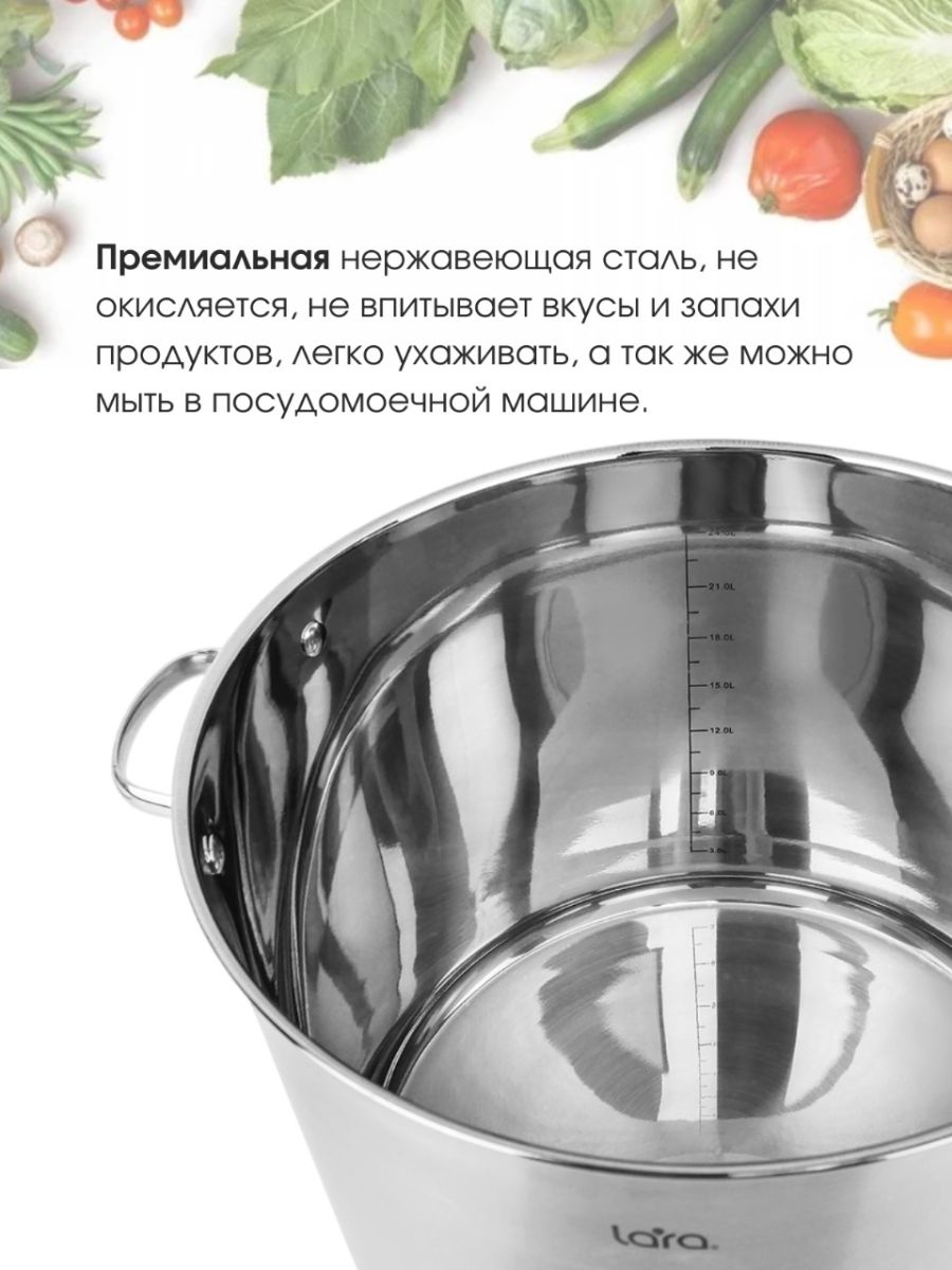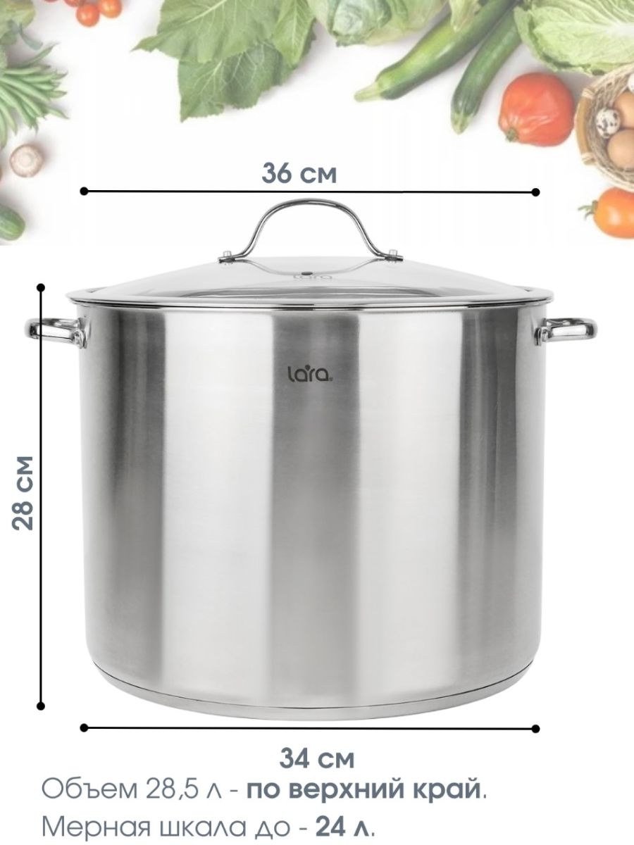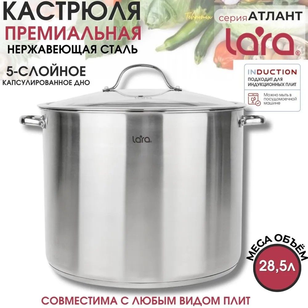Кастрюля LARA АТЛАНТ 02-904 28,5 л.,индукция, стеклянная крышка