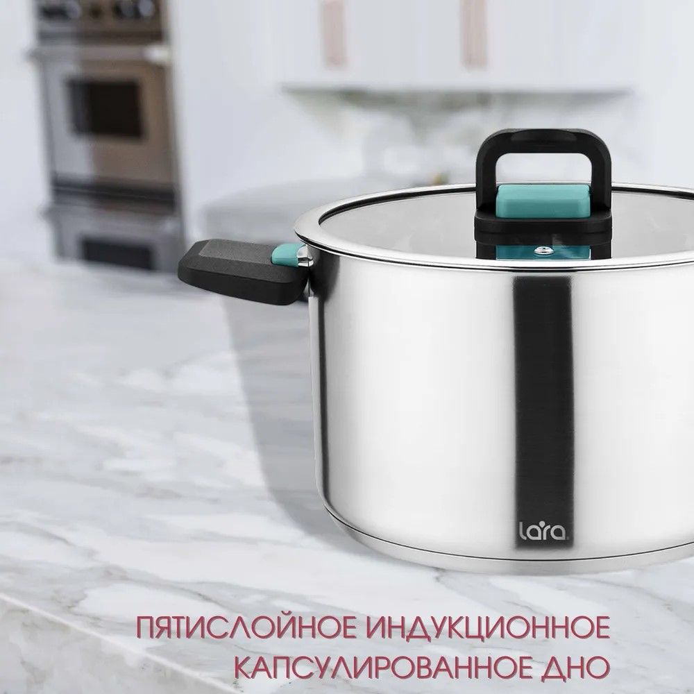 Кастрюля LARA АФИНА 02-268 3,9л, капсулированное индукционное дно, стеклянная крышка