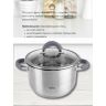 Кастрюля из нержавеющей стали на 3,9 литра со стеклянной крышкой с паровыпуском Lara . Ручки имеют термоупорное силиконовое покрытие. Маленькая кастрюлька- незаменимая помощница на кухне любой хозяйки и имеет толстое пятислойное капсульное дно, благодаря чему происходит равномерное распределение тепла и еда не пригорает к стенкам кастрюли.