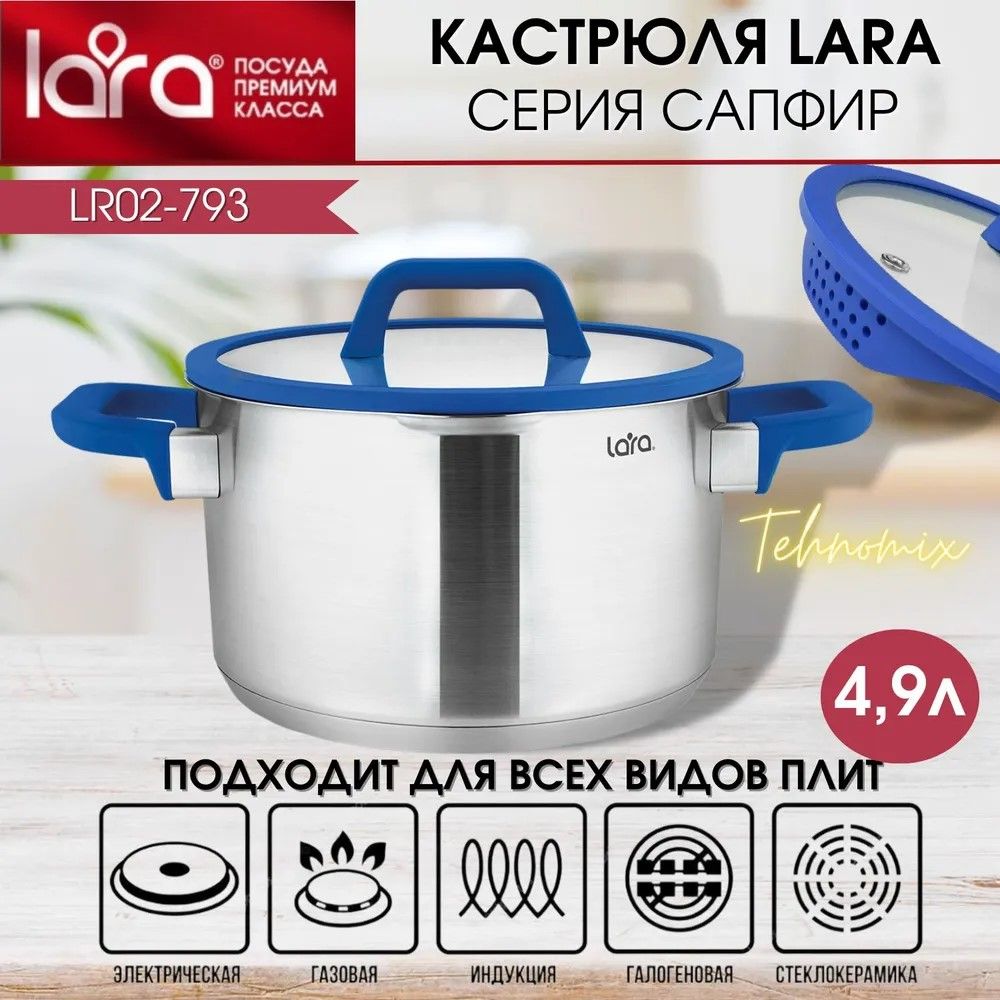 Кастрюля LARA САПФИР 02-793 4,9л, 22 см