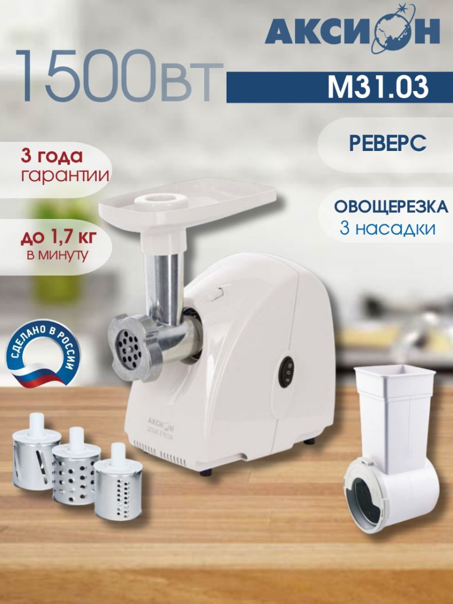 Мясорубка АКСИОН М31.03 1500Вт, реверс, шинковка