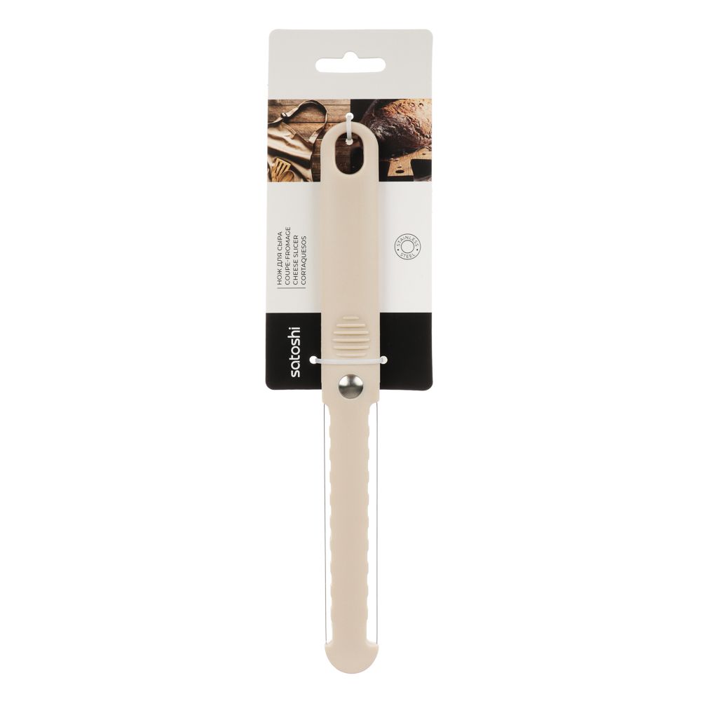 С ножом для нарезки сыра и масла SATOSHI вы легко нарежете сыр на аккуратные ломтики. Струны с обеих сторон изделия зафиксированы на разной высоте, что позволяет получать ломтики разной толщины. Сыр не липнет как, например, к поверхности ножа, из-за чего кусочки получаются скомканные. С помощью струнной сырорезки сыр станет нарезать намного проще и быстрее, а кусочки будут такие, как вам нужны. Пластиковая ручка удобная и имеет ребристую поверхность для более надежного хвата.