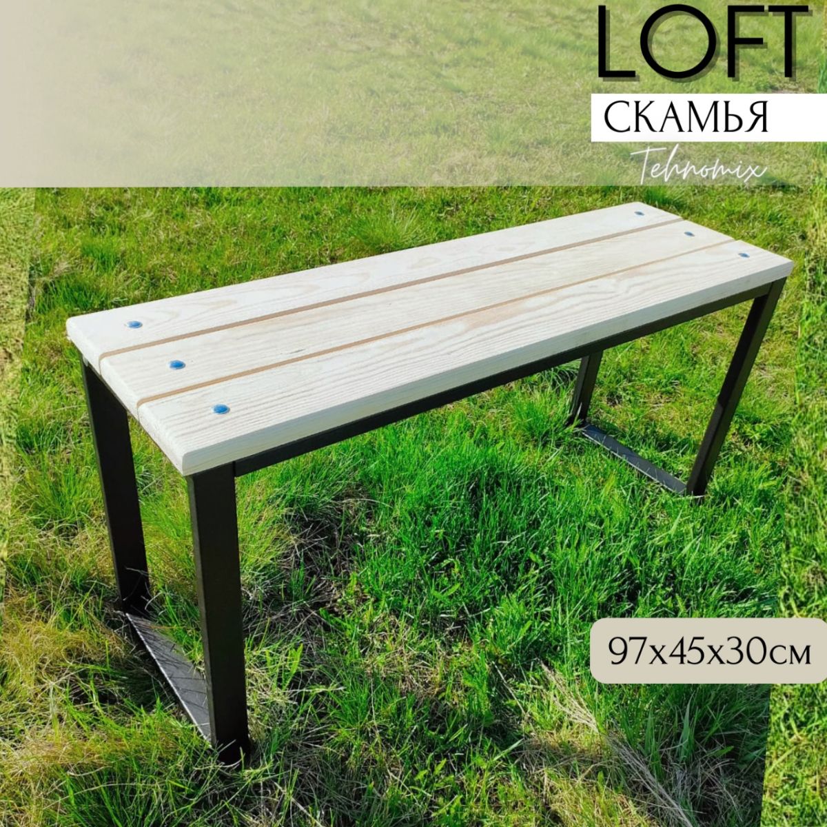 Скамейка - лавка "LOFT" в стиле лофт из натурального дерева и металлического каркаса. Прекрасно сочетается с современной мебелью и интерьером, подходит для дома и офиса, улицы, веранды, на террасе или в бане. Каркас скамейки разборный, выполнен из металлического профиля 40х20мм, окрашен чёрной порошковой краской. Можно использовать в помещении - прихожей, на балконе, а так же в кафе, ресторане или в школах.
