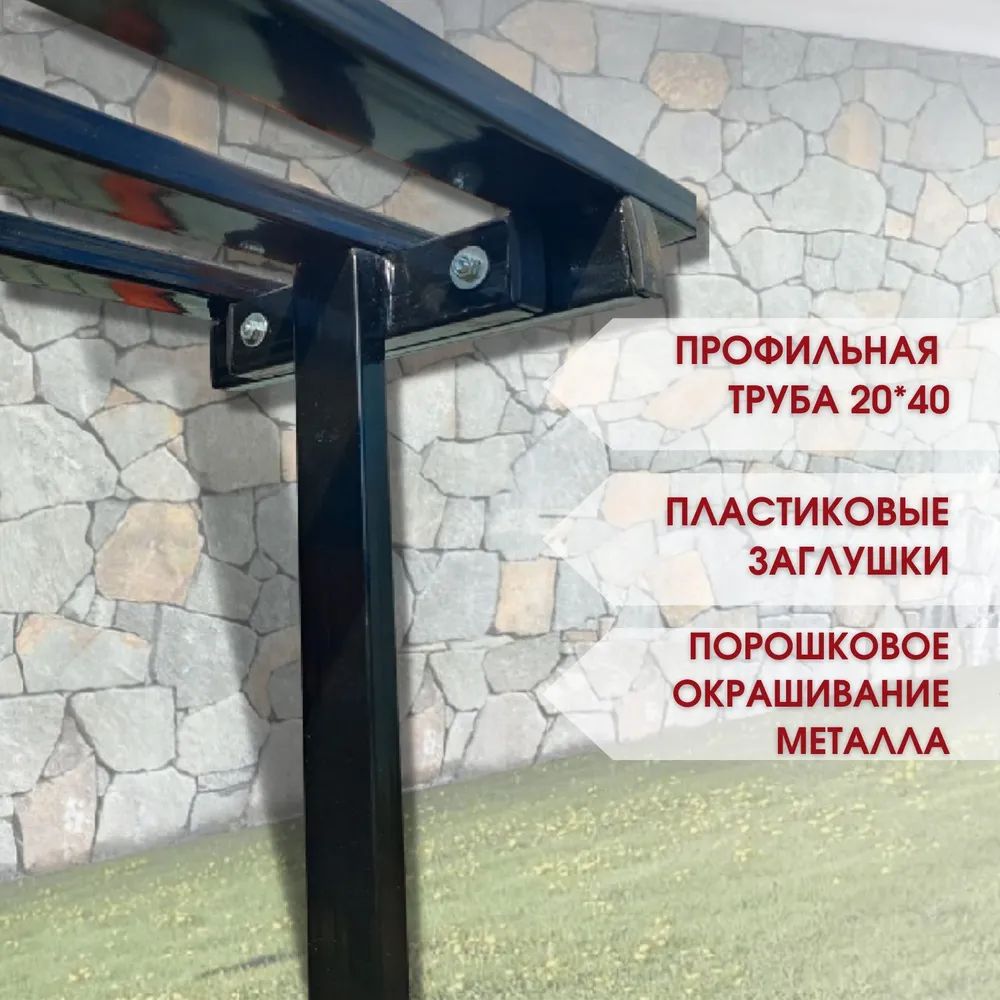Каркас лавки и сиденье изготовлены из профильной трубы 20*40 и покрыты глянцевой порошковой краской черного цвета. Конструкция лавки разборная.