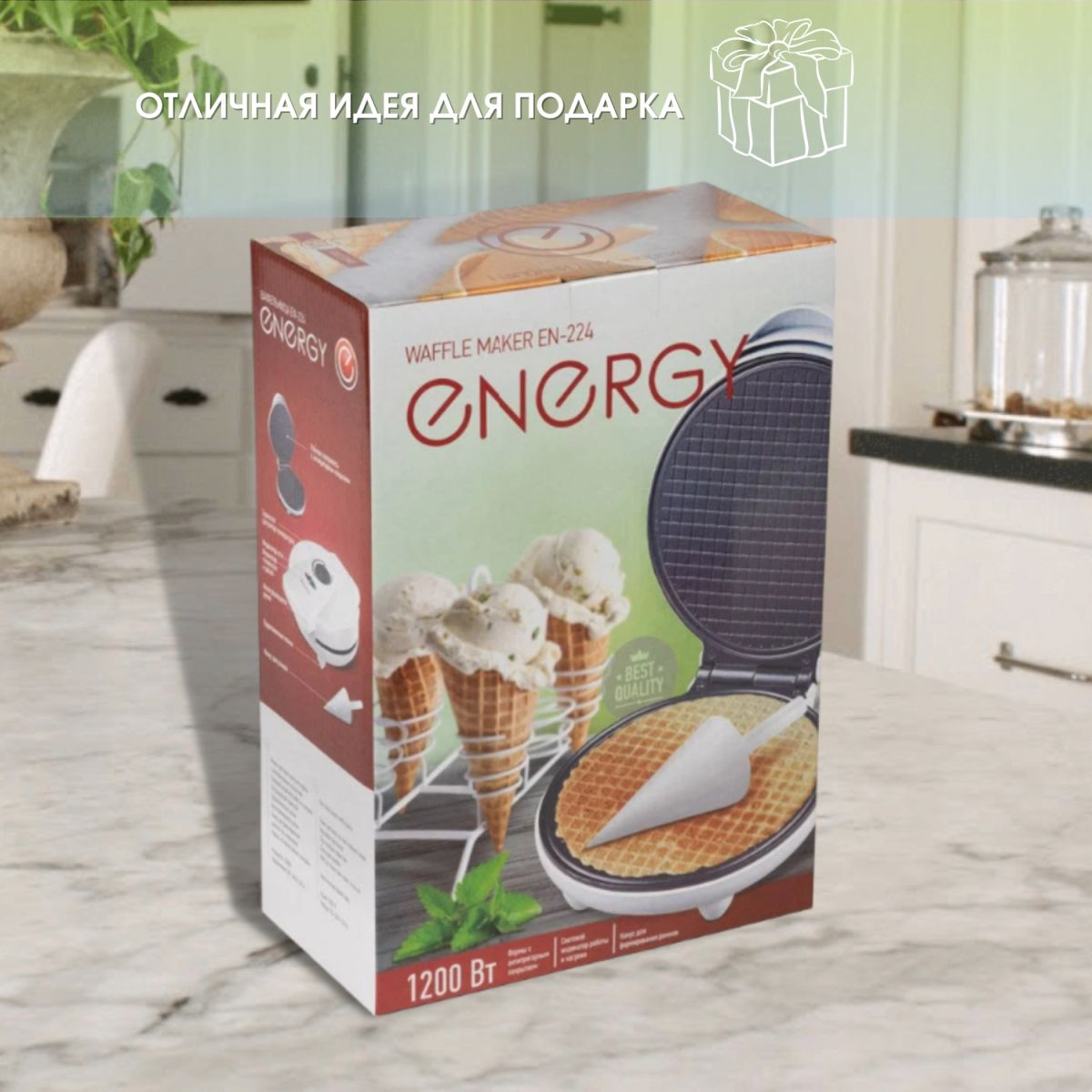 Электрическая вафельница Energy 224 предназначена для приготовления тонких, хрустящих вафель. Из них можно приготовить вкусные трубочки, а также вафельные рожки для мороженого и корзиночки для десертов и несладких закусок, а также вафельные торты. Конус для приготовления рожков в комплекте, который позволяет скручивать вафли в рожки. Благодаря современному дизайну и белому цвету корпуса вафельница станет украшением и впишется на любой кухне. Индикаторы включения и нагрева покажут, когда вафельница для кухни готова к работе. Прорезиненные ножки не дадут прибору скользить по столу.